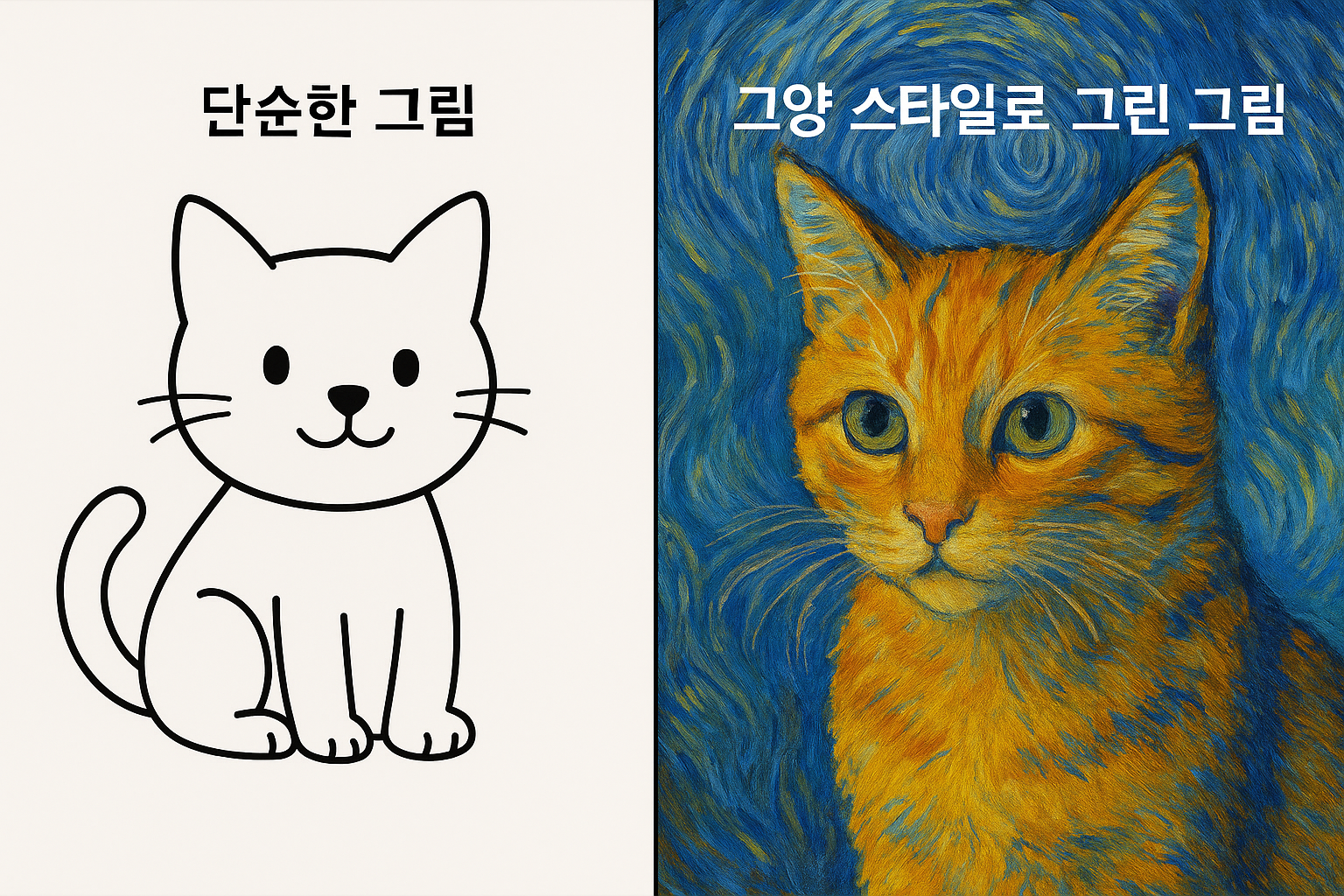 - 응용: 빛, 화풍, 색감, 감정까지 지시해 자신이 원하는 스타일의 이미지를 얻는다.